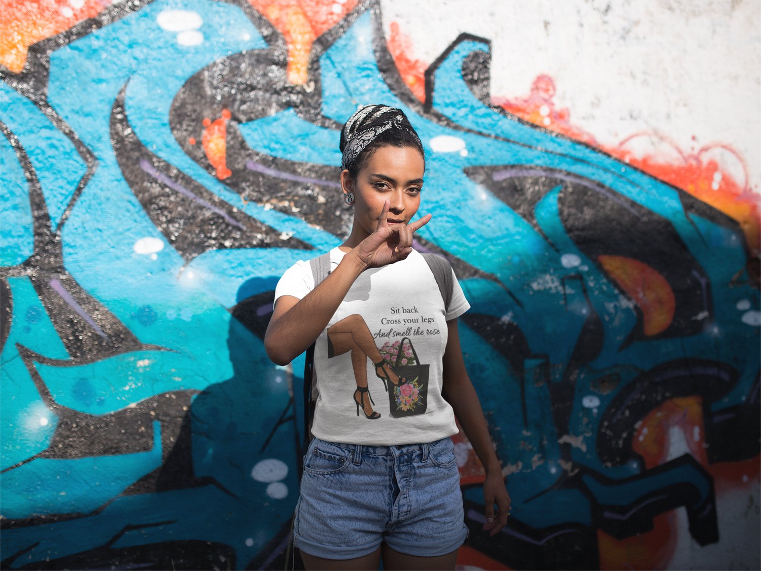 Woman Trying on Shoes Tee - Printed Tee || UT graphic t-shirts